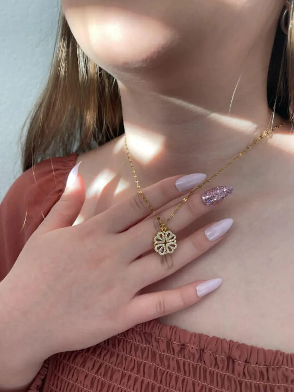Diese besondere Halskette vereint ein wandelbares Design mit einer starken symbolischen Bedeutung. Ob als vier Herzen oder als stilisiertes Glückssymbol getragen – der Anhänger zieht Blicke auf sich und verleiht jedem Outfit eine elegante, persönliche Note. Ideal für Frauen, die Schmuck mit Aussagekraft lieben.